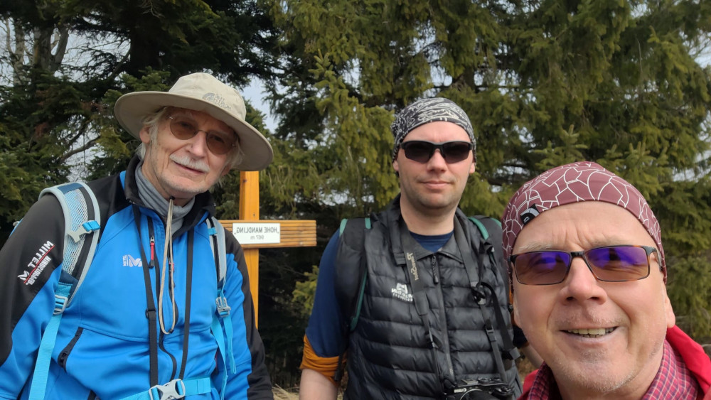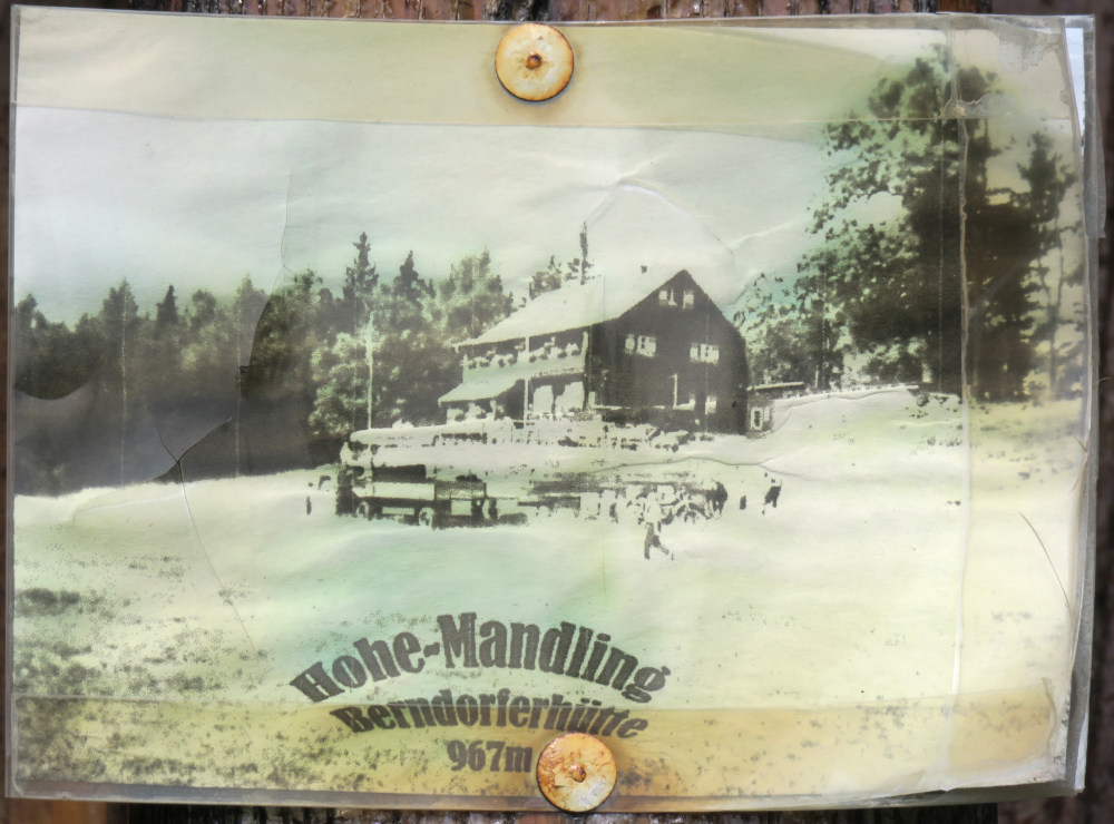 Zu diesem Zeitpunkt wunderte sich Norbert vielleicht schon, oder auch nicht, weshalb wir für die Vordere Mandling die Knödelwiese weitergingen, und nicht am markierten Weg zuerst nach Süden. Ich sagte zu Günter noch, dass ich hier schon länger nicht mehr gegangen bin, kam mir der Weg doch überhaupt nicht bekannt vor. Dann machte der Forstweg eine markante Rechtskurve, was uns doch veranlasste, einmal auf die Karte zu schauen. Ui. Völlig falsch. Der Weg kam uns nicht bekannt vor, weil wir hier noch nie gegangen waren. Also gingen wir den Forstweg aus, bis wir wieder am markierten Kammweg waren.