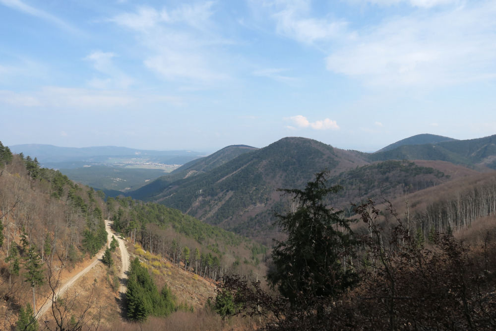 Der frisch geschlägerte Forstweg trägt den Namen „Fritz-Lackner-Promenade“. Also promenierten wir den Weg zunächst flach, dann immer steiler werdend nach Peisching hinab, wo wir weniger als hundert Meter entfernt wieder zum Parkplatz stießen. Schön war’s!