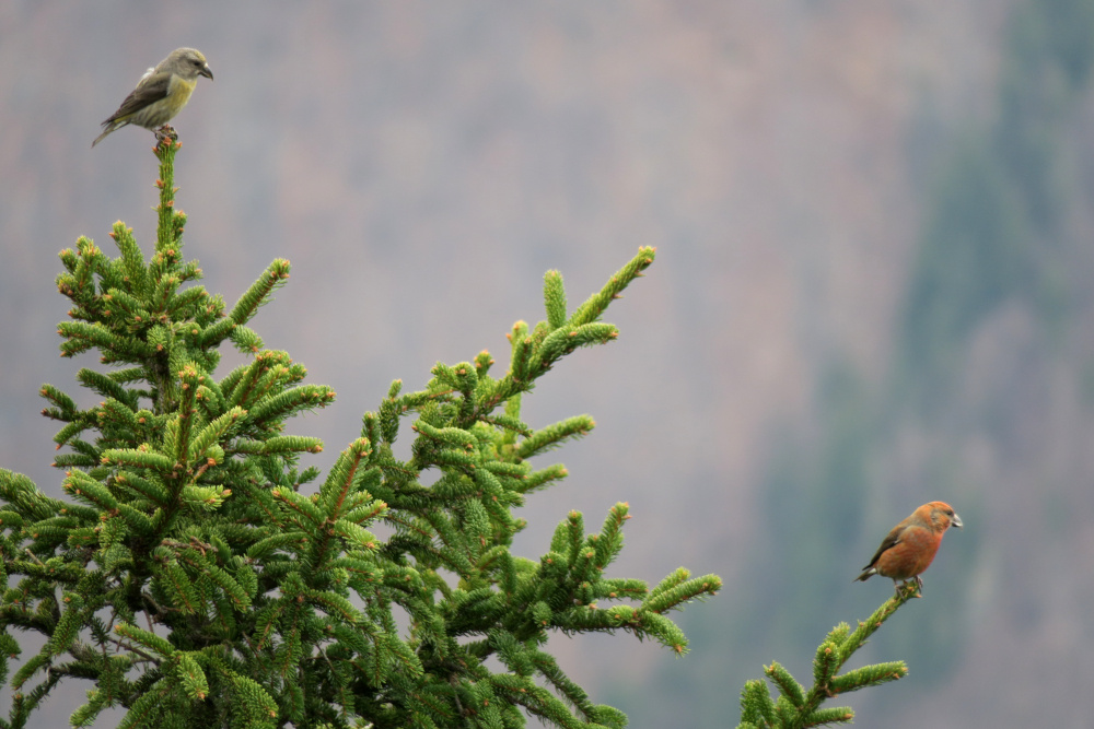 Viecher: 2 Fichtenkreuzschnäbel