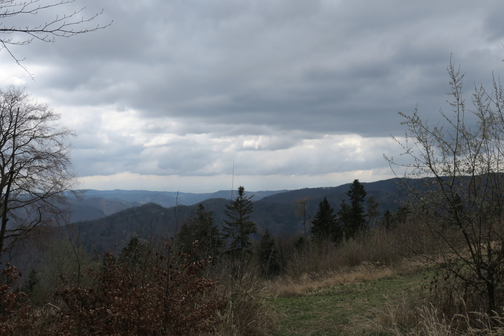 Die hier beschriebene Variante mit dem Eichberg und der Bärenwand ist mir erst letzte Woche beim Kartenstudium eingefallen – speziell den Aussichtspunkt Bärenwand kannte ich noch nicht. Wie man im Titelbild sieht, ist der Ausblick lohnenswert. An klaren Herbsttagen kann man sogar bis ins Tote Gebirge sehen.