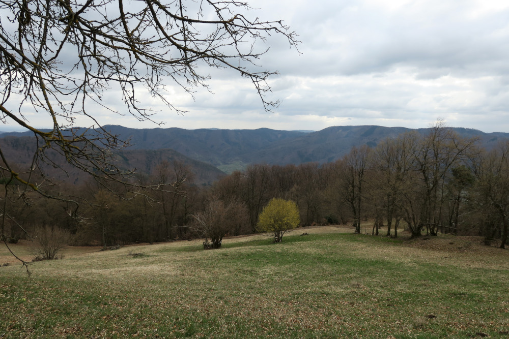 Durch die großen Wiesen ein durchaus weitläufiger, schöner Platz, sehr idyllisch gelegen. Aussicht gab es vom Gipfelpunkt direkt keine, aber etwas unterhalb.