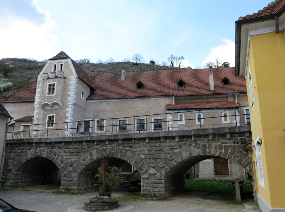 Der Bau der Wachaubahn zerstörte dann den idyllischen Innenhof zwischen Bürgerspital und Rathaus.