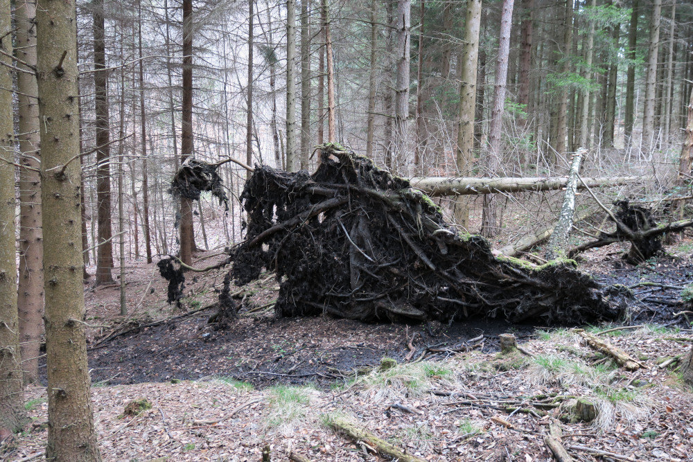 Ich kürzte das Eck durch einen Forstweg ab, geriet dabei in Unmengen an Wildschweinspuren und sah mutmaßlich auch ein Wildschwein von rechts nach links flüchten.