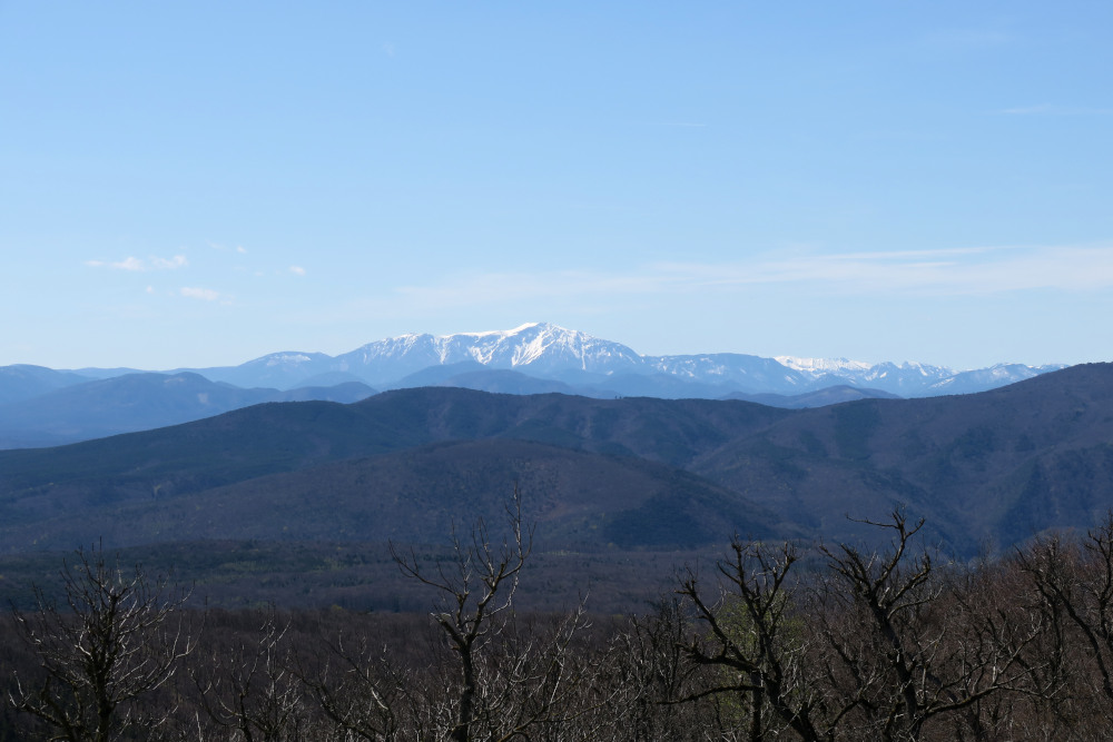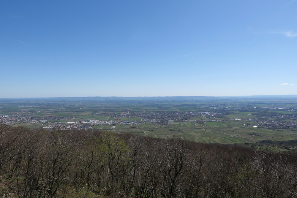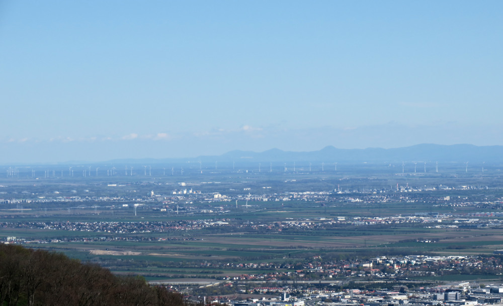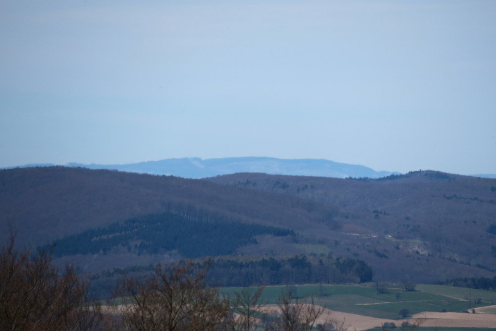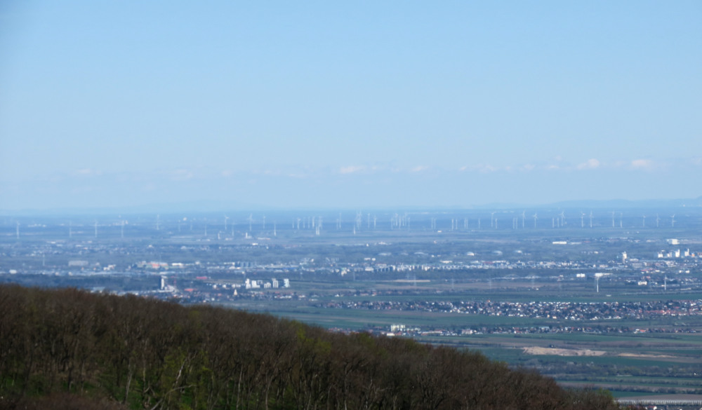 Bei meiner 28. Besteigung der Wilhelmswarte herrschte ungewöhnlich gute Fernsicht für Anfang April und in der präfrontalen Luftmasse. Einzig der Sonnenstand verhinderte den Blick bis zum Bakonygebirge.