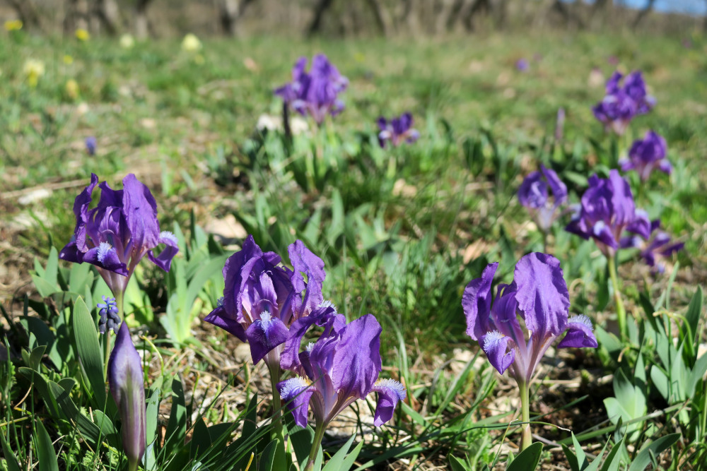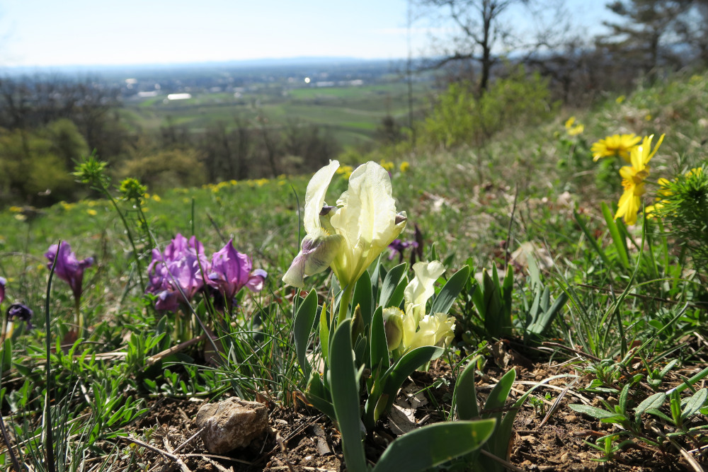 Vegetation: Primeln, Leberblümchen, Zwergschwertlilien, Frühlingsplatterbse, Schwarzwurzel, Kreuzblumen, Traubenhyazinthen, Sommeradonis u.v.m.