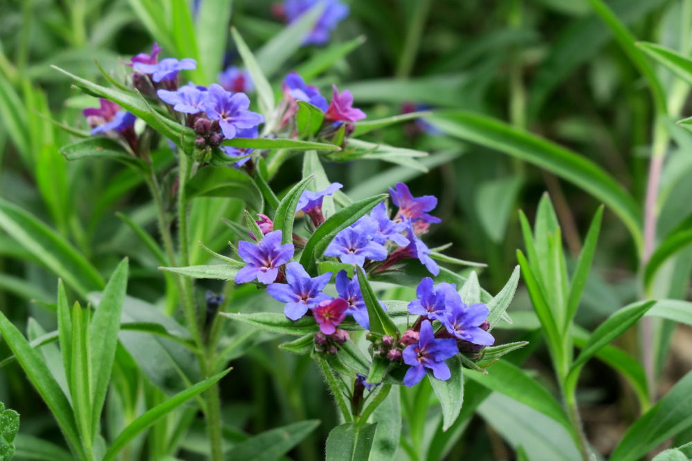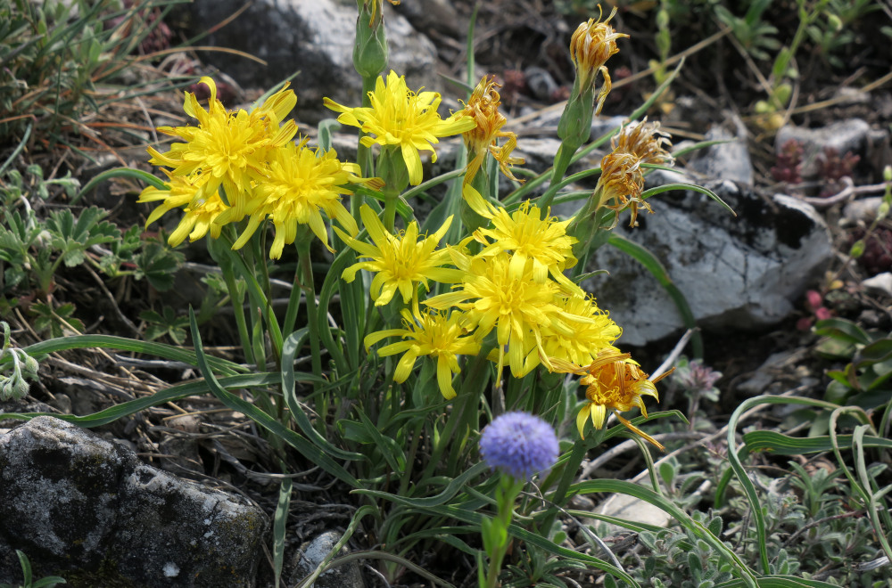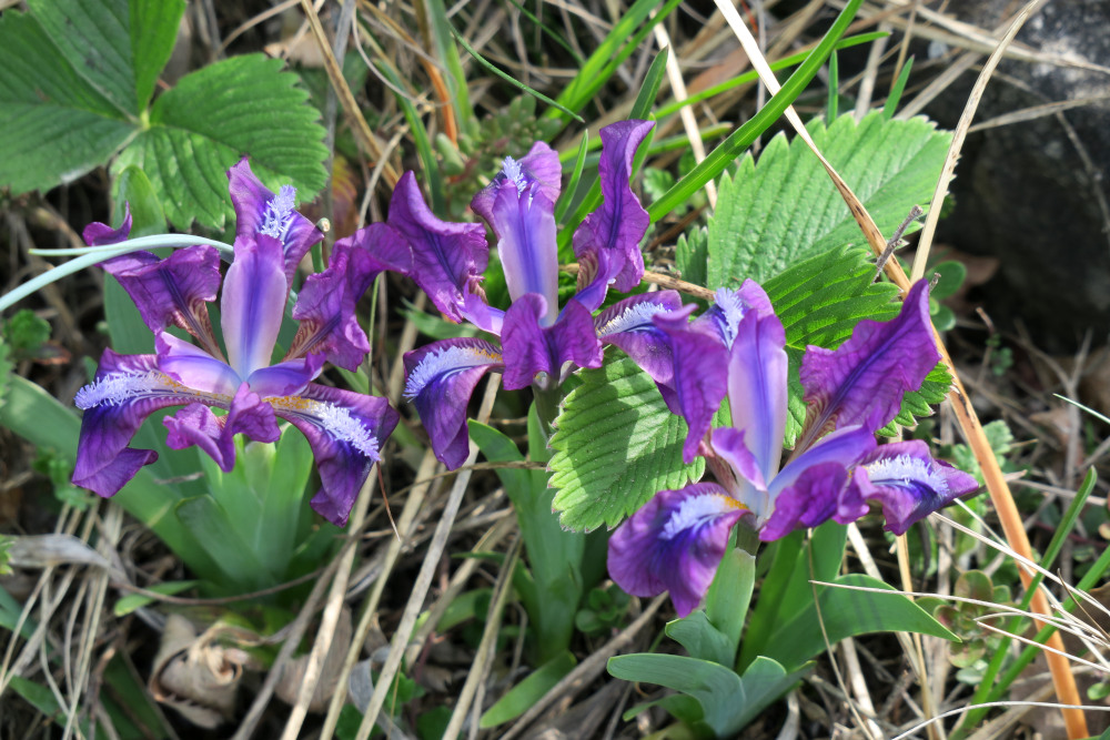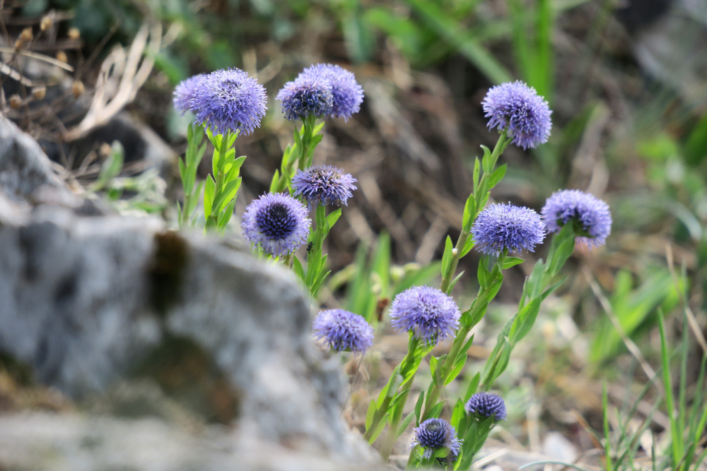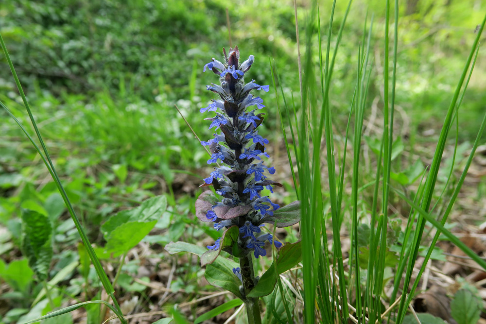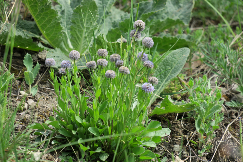 Vegetation: Blaurote Steinsame, Echte Kugelblumen (Braunsberg); Kugelblumen (Schlossberg), Zwergschwertlilien, Kugelblumen, Schwarzwurzel, Tonnen an Bärlauch (Hundsheimer Berg)
