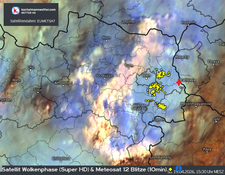 Einmal sah ich es noch kurz blitzen, in Hainburg selbst war es dann nurmehr stark auffrischender Westwind und starker Regen, der aber viel länger als geplant anhielt. Die Linie verstärkte sich von den Kleinen Karpaten bis zum Seewinkel nochmals.
