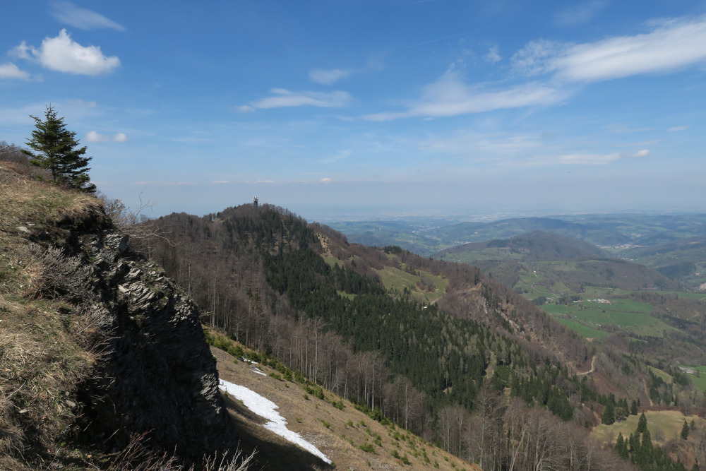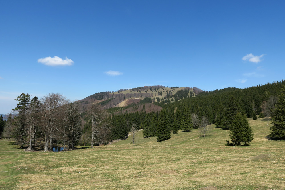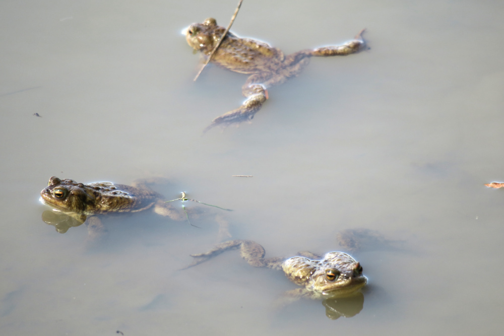 Es sollte tierisch weitergehen, denn bei einer kleineren Lacke am Kamm der Sternleiten tummelten sich sicherlich zwei Dutzend Frösche im Wasser. Sie bestiegen sich gegenseitig und quakten dabei wie Enten.
