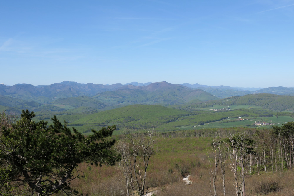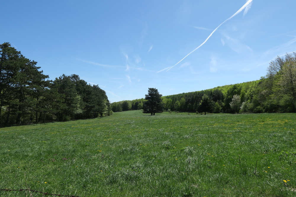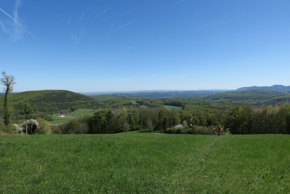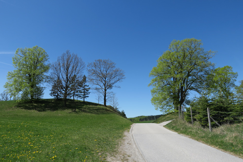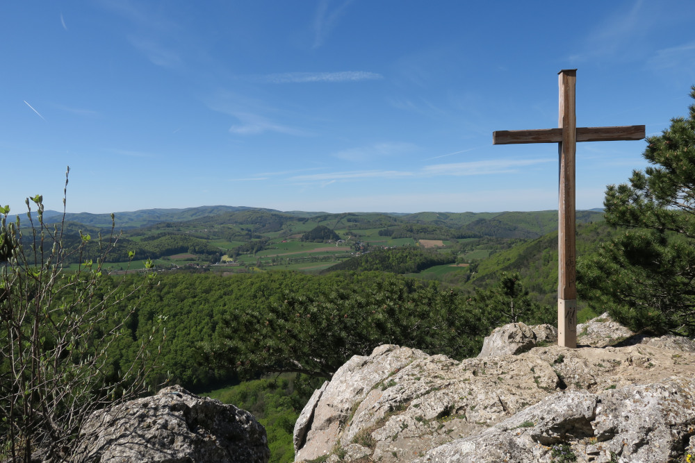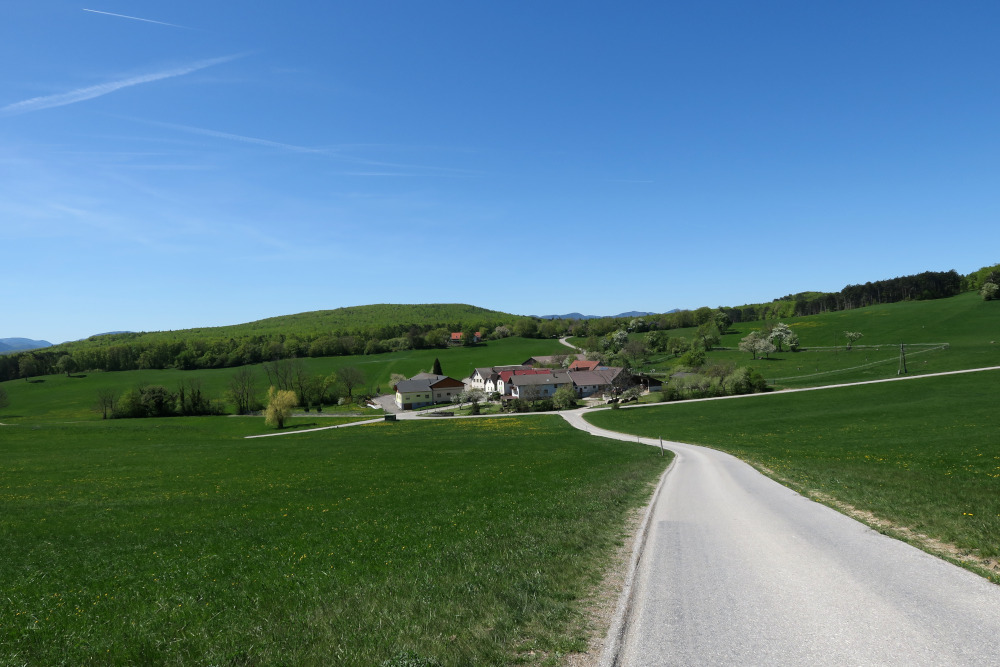 Ein lange gehegter Plan endlich umgesetzt: Vom Helenental ins Triesting unter Mitnahme zweier bekannter Kalkgipfel im Wienerwald. Dabei störten mich auch das Wochenende und das vermehrte Besucheraufkommen nicht. Der Samstag war für die Anfahrt sogar etwas günstiger, weil ich sechzehn statt sechs Minuten Umstiegszeit hatte. Der unmarkierte Steig nördlich vom Allandriegel war sehr schön zu gehen. Bei den Orchideenwiesen war ich zu früh dran für Orchideen. Der Weitwanderweg (04er) quert die Höfe ohne Hundebegegnung. Am Dernberg verpasste ich den echten Gipfel, dazu später mehr. Das Wetter gestaltete sich frühsommerlich warm, doch der lebhafte Westwind war sehr lästig.