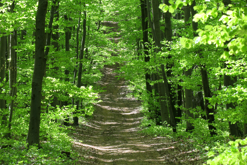 Der Dernberg selbst musste nicht weglos erstiegen werden, sondern über der eingezeichneten Schneisen, die über den (vermeintlichen) Gipfelpunkt verlaufen. Die von Nordosten war jedenfalls ein gut ausgebauter Forstweg, anfangs flach, später immer steiler werdend.