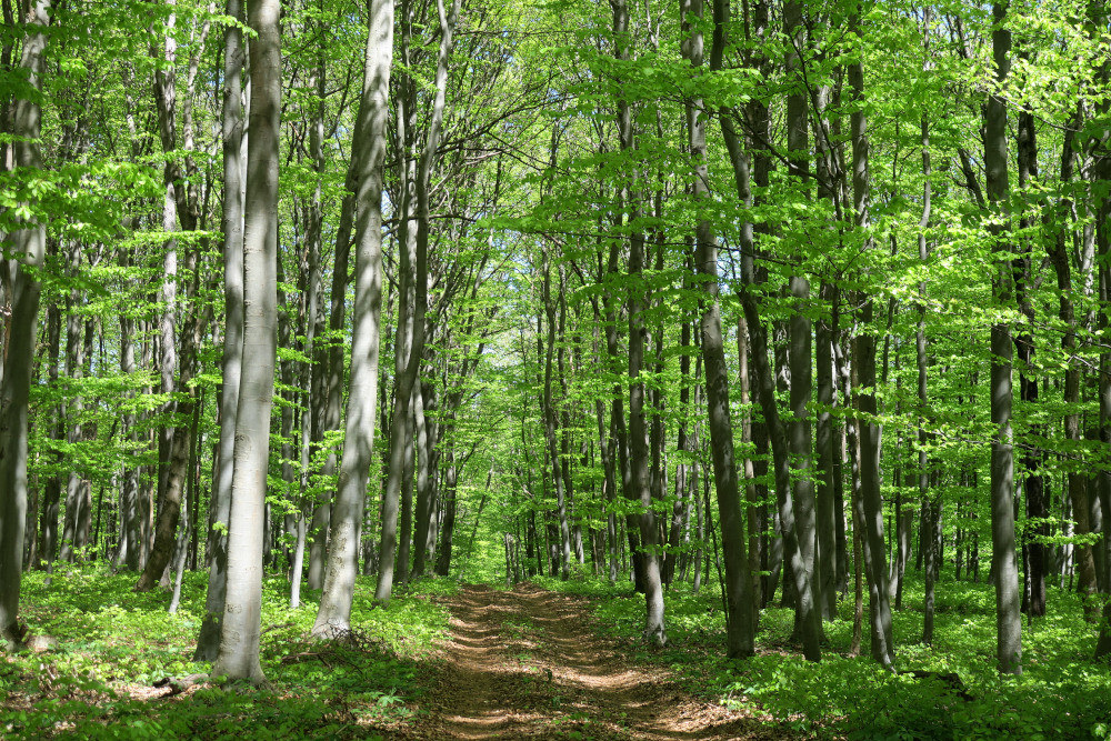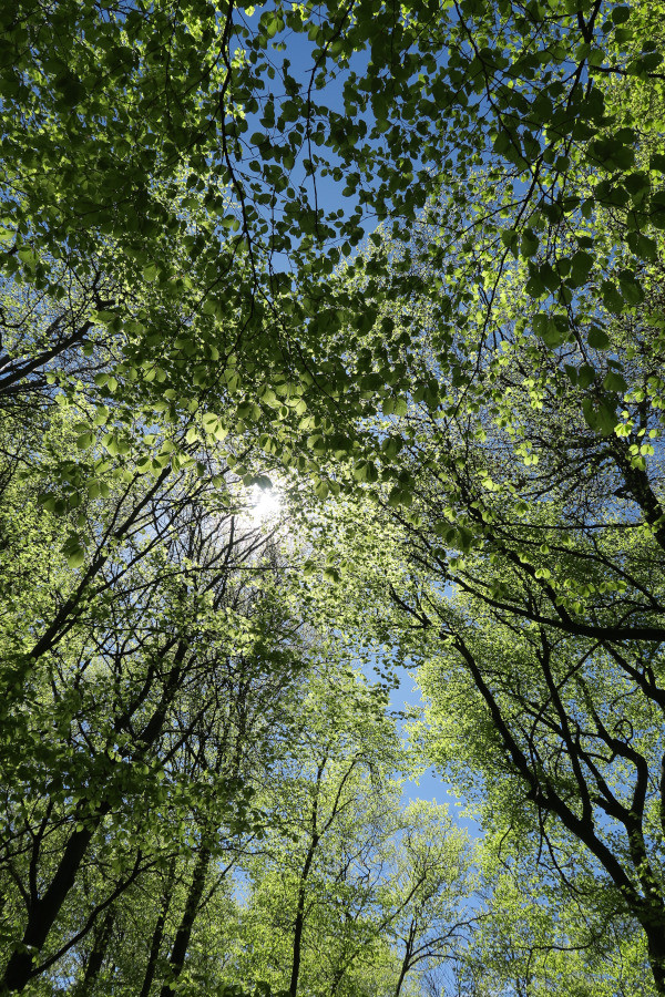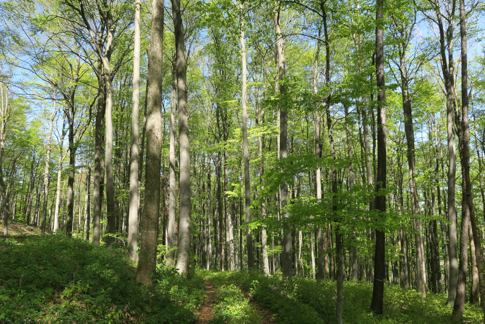 Kurz drauf spazierten ohne Hast zwei große Rehe von links nach rechts und verschwanden im Buchenwaldickicht.