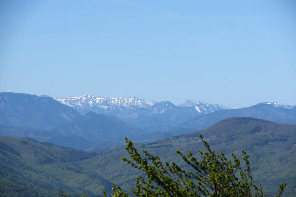 Beim Schutzhaus Eisernes Tor verzichtete ich auf die Einkehr, die war dieses Mal im Peilsteinhaus geplant. Auf die Sinawarte stieg ich aber. Auf der nicht allzu geräumigen Aussichtsplattform saß ein Funker mit Funkgerät und gab zig Mal eine bestimmte Wortkombination und danach seine Kennung durch (OE3BIY), und wartete auf eine Antwort.