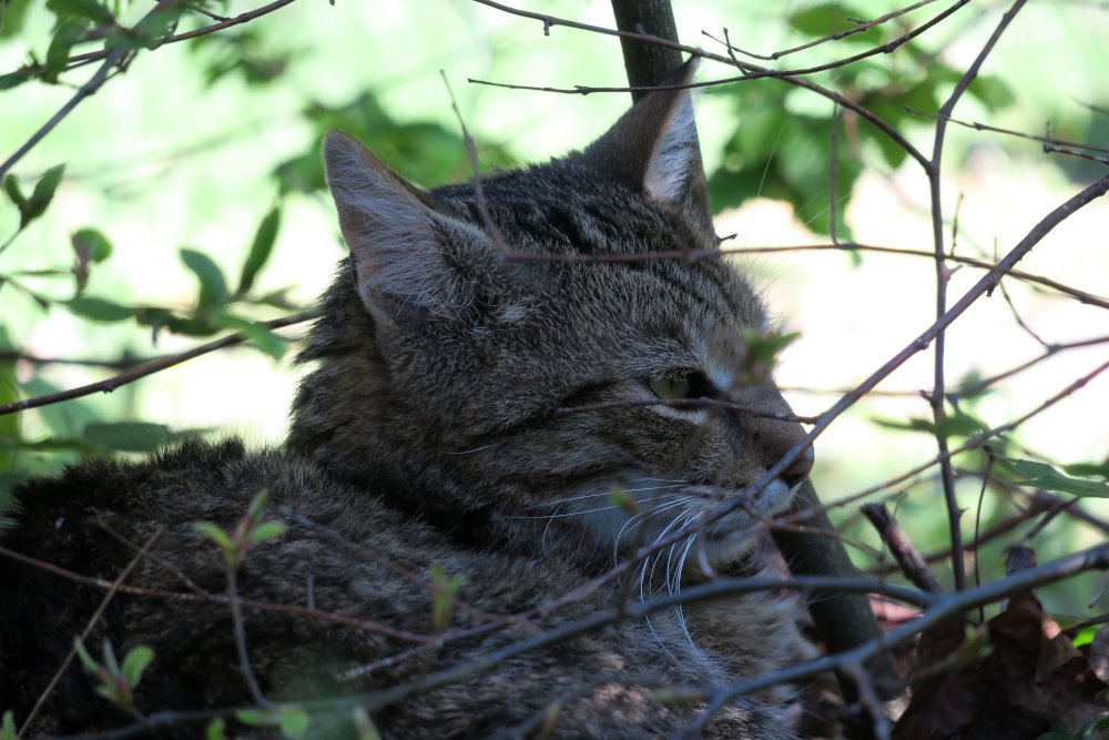 Die Katze ließ sich weder vom einfahrenden Zug, von kreischenden Motorradfahrern noch von aufgedrehtem Bass vorbeifahrender Autos irritieren. Erst als ein Fahrzeug mit einem hellen Klingeln vorbeifuhr, hob sie den Kopf. Der sich bald wieder senkte und sie weiterdöste.