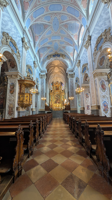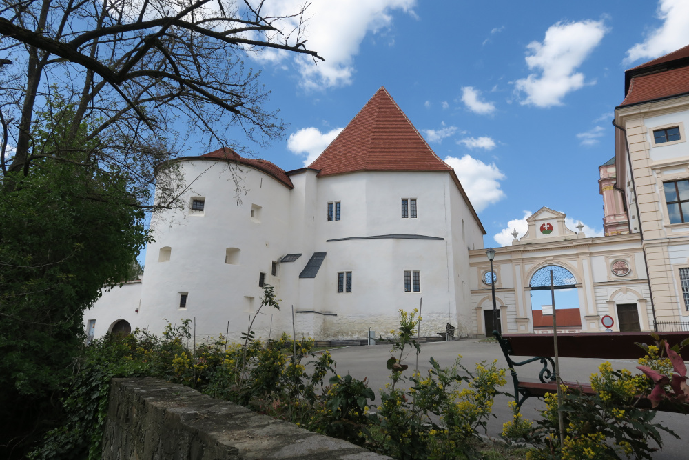 Die Anlage war, anders als es der erste Eindruck vermuten ließ, keineswegs durchwegs im Barock erbaut worden. Das Langhaus hatte romanische und gotische Ursprünge – zu sehen außerdem der westliche, ältere Flügel, auch „Burg“ genannt, aber das sollte ich mir später noch aus der Nähe ansehen.