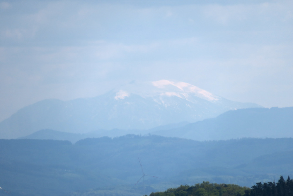 Ich setzte mich auf das Gipfelbankerl, um zu jausnen und mich umzuziehen. Von hinten sprach mich plötzlich eine Bergläuferin an „Hallo!“ – Ich erschrak merklich und sie entschuldigte sich, aber ich hatte einfach nicht damit gerechnet, nachdem ich am ganzen Weg niemand begegnet war. Sie verschwand gleich wieder und ich kramte weiter im Rucksack herum. Plötzlich sprach mich schräg von vorne ein Wanderer an, der über den unmarkierten Steig am Rücken aufgestiegen war. Ich erschrak erneut und auch er entschuldigte sich gleich. Manchmal hat man eben einen Lauf …