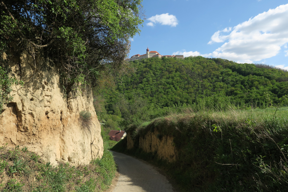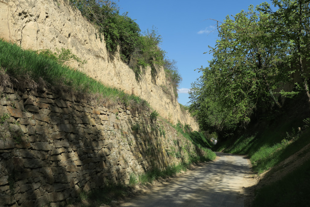 Ab Aigen dann kurz steil hinauf zu den Weinbergen über beeindruckende Hohlgassen im Löss.