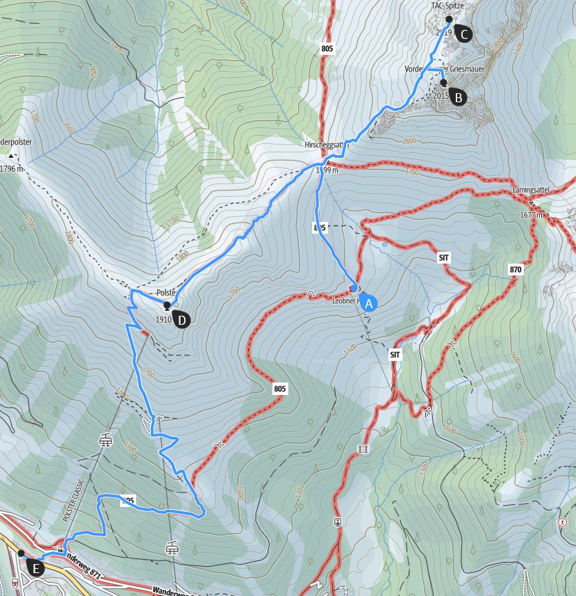 - Ennstaler Hütte: Tamischbachturm, Tieflimauer (6.48-9.47 Direktzug am Wochenende)